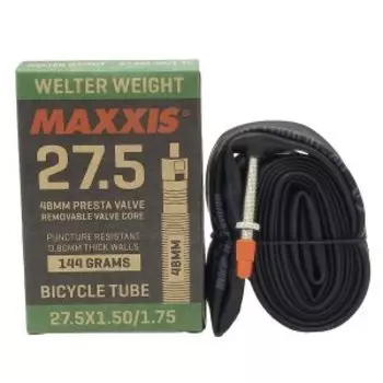 Maxxis480 ₽Камера Maxxis Welter Weight для велосипеда с размером 27.5x1.50/1.75, оснащена велониппелем длиной 48 мм и толщиной стенок 0.9 мм, обладает проколоустойчивостью и весом около 144 граммов.