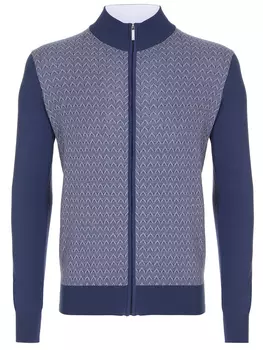 Cudgi10600 ₽Кардиган трикотажный на молнии | -Темно-синий кардиган с фактурным геометричным узором от CUDGI.-Воротник-стойка, длинные рукава, эластичные манжеты и пояс, застежка-молния. kit: None. gender: None. К...