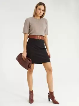 Jetty2066 ₽Джемпер прямого силуэта с круглым вырезом горловины и коротким втачным рукавом. В боковых швах имеются разрезы. Цвет: коричневый. Материал: 95% хлопок, 5% эластан.
