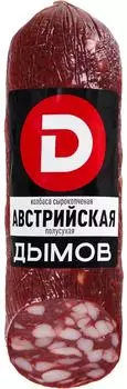 Дымов140 ₽Сырокопчёные колбасы Дымов | «Австрийская» колбаса отличается красивым срезом с крупными кусочками шпика. Чеснок и черный перец придают этой колбасе насыщенный пряный вкус с легкой остротой — она отли...