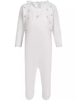 Miss Blumarine19499 ₽Комплект: комбинезон и шапка, розовый Miss Blumarine | Комплект розового цвета сшит из мягкого натурального хлопка. Комбинезон с отложным воротником и застежкой на кнопки декорирован пышными рюшами из...