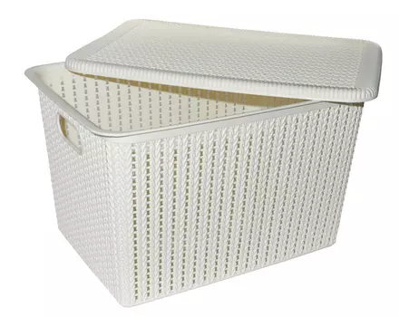 VDD420 ₽Корзина с "вязаной" крышкой 20Л молочный | 3418472. Категория: Хранение и хозтовары/Гардеробные комнаты/Корзины и короба