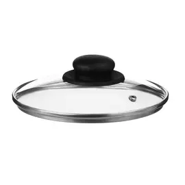 Hitt389 ₽Стеклянная прозрачная круглая крышка диаметром 22 см с пластиковой ручкой, подходит для кастрюль и сковород, можно мыть в посудомоечной машине.