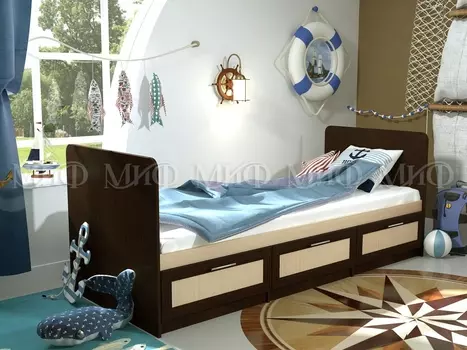 Миф13455 ₽Кровать Миф Дельфин дуб беленый/синий ПВХ 1,8 м | Тип односпальная Коллекция Дельфин Ширина спального места 80 см Длина спального места 180 см Основание в комплекте да Бельевой ящик есть Тумба в компл...
