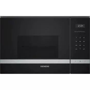 Siemens45360 ₽Встраиваемая микроволновая печь Siemens BF525LMS0 мощностью 800 Вт, чёрного цвета, с металлическим корпусом.