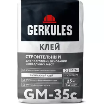 GERKULES382 ₽Клей строительный Gerkules GM-35C 25 кг | **Клей строительный Геркулес GM-35C** Универсальная монтажно-строительная цементно-песчаная смесь широкого применения. Применяется в качестве тонкошовного кла...