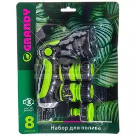 Grandy463 ₽Набор включает поливочный пистолет с восемью режимами и фитинги для шланга. Изготовлен из ABS пластика, подходит для стандартных садовых шлангов.