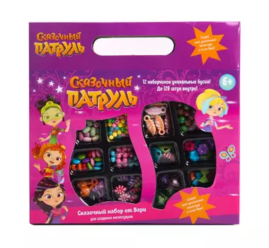 Сказочный Патруль249 ₽Набор для создания аксессуаров Сказочный патруль, Варя | Особенности В комплект входит: красочные бусы 12-ти разных видов - форм и расцветок (всего 120 штук), леска. Яркая упаковка размером 16,5 х 18 ...