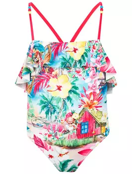 Mayoral3500 ₽2975 ₽-15%Милое бикини для девочек с ярким цветочным рисунком на кремовом фоне. Асимметричный топ украшен оранжевыми аппликациями, рюшами и одним регулируемым плечевым ремнем.