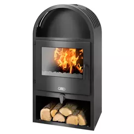 ABX186150 ₽Чешская дровяная печь-камин ABX Arktis 6 с верхней плитой. Обогревает дом, подогревает пищу в нише над очагом. Очаг имеет стеклянную дверцу.