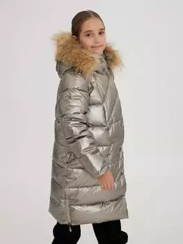 Noble People22799 ₽17999 ₽-21%Зимнее пальто для девочки золотого цвета с молнией и кнопками, капюшоном с опушкой, шевроном на рукаве и боковыми карманами. Стильный дизайн, глубокий капюшон и свободный силуэт. Удлиненная модель под...