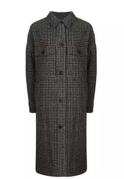 Isabel Marant Etoile85500 ₽25650 ₽-70%Пальто рубашечного кроя с широкими рукавами, отложным воротником и большими карманами на груди. Изготовлено из мягкой шерсти цвета антрацит с узором в клетку и застегивается на крупные пуговицы.