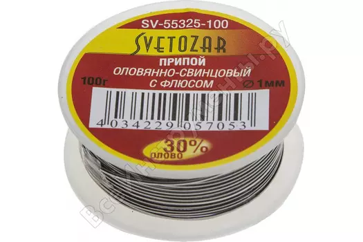 Светозар86 ₽Припой СВЕТОЗАР SV-55325-015 | Припой СВЕТОЗАР оловянно-свинцовый, 30% Sn / 70% Pb, 15гр