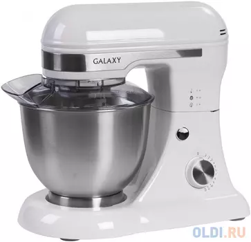 Galaxy6020 ₽Миксер белого цвета, стационарный, мощность 700 Вт, 12 скоростей, турборежим и вращение чаши. Чаша из нержавеющей стали объемом 4 литра с планетарным смешиванием.