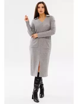 Ma Сherie8179 ₽Платье 4091 серый | Стильное трикотажное платье Ma Сhrie свободного силуэта длиной миди. Горловина цельнокроеная стойка, обработана обтачкой. Перед цельный, снизу выполнен разрез. Спинка со средним шв...