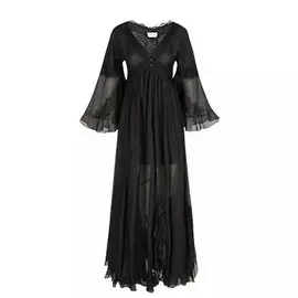 Ermanno Ermanno Scervino69400 ₽Шерстяное платье с глубоким V-образным вырезом, украшенным полупрозрачным кружевом, и длинными рукавами с вышивкой пайетками.