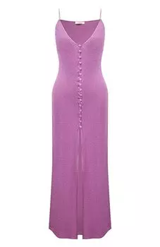 OSEREE42750 ₽Сиреневое платье с глубоким декольте и узкими бретелями, выполненное из тонкого материала с металлизированными нитями. Платье имеет пуговицы спереди и высокий разрез на ногах.