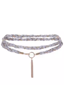 AGNONA96100 ₽38440 ₽-60%Пояс комбинированный | -Пояс комбинированный плетеный из серого текстиля и золотистой цепочки от AGNONA.-Золотистое кольцо с кистью из мелких цепочек.-Вариант для подарка. Пол: Для женщин. Размер: Оди...
