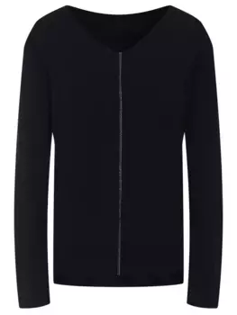 LE TRICOT PERUGIA47500 ₽23750 ₽-50%Черный пуловер из мягкой смесовой шерсти с добавлением шелка и кашемира. Полуприлегающий силуэт с асимметричной длиной спинки, длинными рукавами, рельефными манжетами и поясом, V-образным вырезом на г...