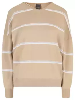 Lorena Antoniazzi58850 ₽Светло-бежевый хлопковый пуловер с V-образным вырезом, свободным силуэтом и рукавами реглан. Материал приятен на ощупь и слегка переливается благодаря вплетенным пайеткам.