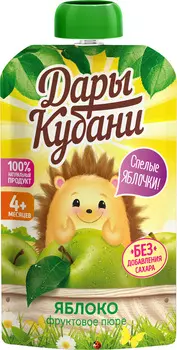 Дары Кубани100 ₽Пюре дары кубани 90 г яблоко с 4 месяцев дой-пак | ПЮРЕ ФРУКТОВОЕ ИЗ ЯБЛОК, ГОМОГЕНИЗИРОВАННОЕ Для питания детей раннего возраста. Стерилизованное.Состав:Состав: яблочное пюре, яблочный сок, вода пить...