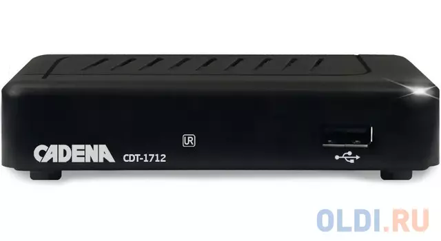 CADENA950 ₽Ресивер DVB-T2 Cadena CDT-1791SB (046/91/00047698) | Ресивер DVB-T2 Cadena CDT-1791SB черный, разъемы HDMIx1, USBx1, RCAx1, поддержка MPEG1, MPEG2, MPEG4, H264, Motion JPEG (.avi, .mpg, .dat, .vob, .d...