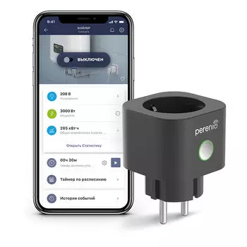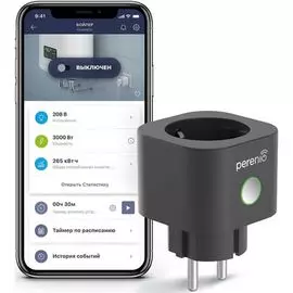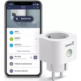 Perenio1340 ₽Умная розетка, Smart Power Plug is a device to control remotely via Wi-Fi connected through it load, measure its power and monitor electrical energy consumption. White color, multi language version.. ...