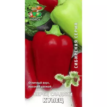 ПОИСК20 ₽Семена Перец сладкий «Купец» | **Перец сладкий «Купец»** — сорт с ранним плодоношением, образует плоды на 110-112 сутки от прорастания всходов. Куст полураскидистый, вырастает до 75-85 см, формирует п...