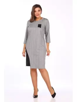 LadyStyleClassic4306 ₽Платье 1479/1 серый | Платье женское прямого силуэта, слегка заужено книзу, из трикотажного полотна, с люрексом. Круглый вырез горловины, с нагрудными вытачками. Сбоку вставка с экокожи. Рукава 3/4. Р...