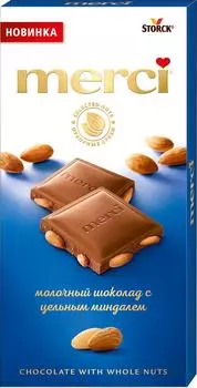 August Storck KG260 ₽Шоколад Merci Молочный с цельным миндалем 100г | Шоколад Merci Молочный с цельным миндалем 100г None. Категория: Сладости/Шоколад/Шоколадные плитки