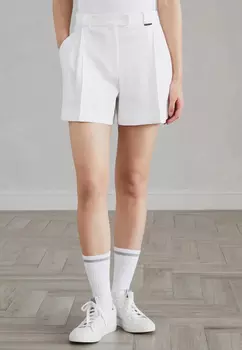 Brunello Cucinelli104500 ₽91950 ₽-12%Белые шорты из полиэстера с защипами спереди, прорезными карманами и эластичным поясом. На левой брючине — нашивка с теннисной ракеткой.