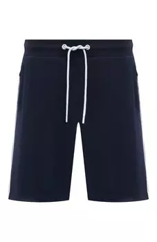 DIRK BIKKEMBERGS26100 ₽18270 ₽-30%Шорты хлопковые | -Темно-синие шорты из хлопкового трикотажа с контрастными брендированными лампасами от DIRK BIKKEMBERGS. -Прямой крой, средняя посадка, широкий эластичный пояс на кулиске, два прорез...