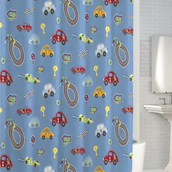 Kassatex7726 ₽Штора для ванной Kassatex Race Track | Цвет: голубой. Цвет: мультиколор. Цвет: рисунок. Страна: Соединенные штаты. Материал: хлопок. Ширина: 183. Высота: 183. Стиль: Современный. Категория: Аксессуары...