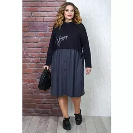 Alanicollection3704 ₽Платье 1240 темно-синий | Платье комбинированное из двух видов ткани: верх-трикотаж, низ-плательно-костюмная. Платье отрезное по линии талии. Степень прилегания по линии талии фиксирует отделочный шну...