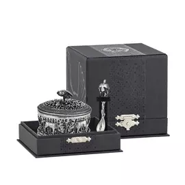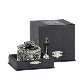 Бронницкий Ювелир9090 ₽Солонка КМ1420206 | Солонка \"Кабан\" посеребренная полированная с чернью с ложкой в футляре. Состав Солонка, хрустальная вставка, ложка для соли, футляр подарочный Металл: Мельхиор Без пробы Вставка:...