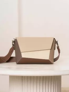 Афина19590 ₽Сумка из натуральной кожи с оригинальной формой и комбинацией пяти оттенков, удобными карманами.