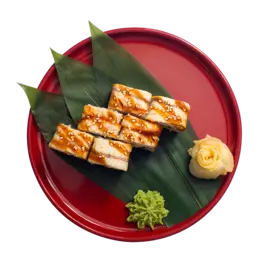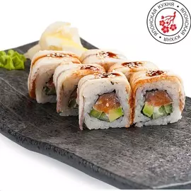 Азбука Вкуса345 ₽Ролл с угрем, готовый к употреблению. Внутри ролла хрустящий огурец и нежное филе копченого угря без кожи, приправленное японским соусом унаги. Ролл обернут морскими водорослями нори и украшен кунжуто...