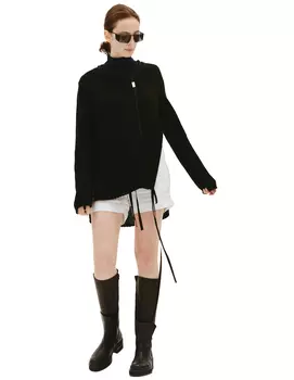 Ann Demeulemeester113000 ₽Свободный шерстяной свитер с высокой горловиной и спущенными плечами, украшенный искусственными разрывами и петлями. Связан английской резинкой из 100% шерсти, кремового цвета. Дизайн из Бельгии.