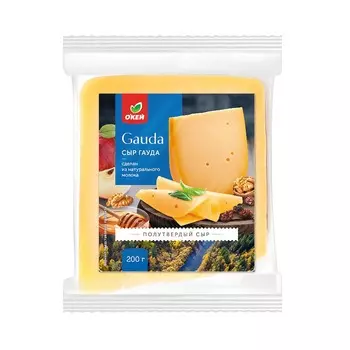 Окей164 ₽БЗМЖ Сыр ОКЕЙ Гауда 45% кусок 200г Россия | Описание товара:Сыр "Гауда" полутвёрдый О'кей. Без консервантов. СТО 158754 19-001-2017.Состав товара:Пастеризованное коровье молоко, соль, бактериальная за...