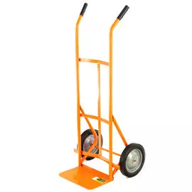 Сибртех5882 ₽Тележка ручная, двухколёсная: груз/п 130 кг, оранжевая | Тележка предназначена для перевозки различных грузов.Рама окрашена порошковой эмалью.Рукоять имеет дугообразную опору, которая позволяет нагруж...