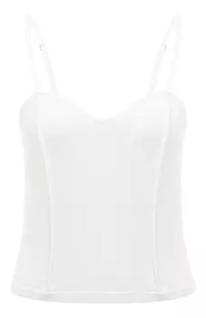Freeage18760 ₽Топ из вискозы Freeage | Слегка укороченный белый топ с узкими регулируемыми бретелями мастера марки сшили из мягкого эластичного трикотажа на основе дышащей шелковистой вискозы. Изделие из такого мат...