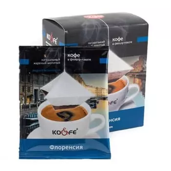 Ко Энд Фе380 ₽Кофе Саше Флоренсия свежеобжаренный молотый в фильтр-пакете 1уп. (10шт.) | Кофе в фильтр-пакетах Флоренсия – современный и быстрый способ получить чашку ароматного, насыщенного и бодрящего напитка без...