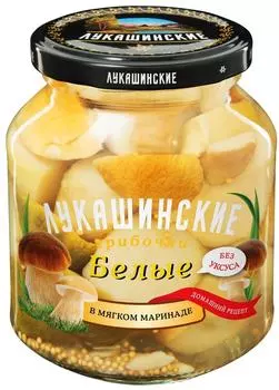 Лукашинские732 ₽Маринованные белые грибы Лукашинские весом 340 граммов.