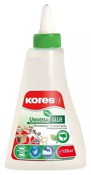 Kores327 ₽Клей универсальный KORES Эко 125 мл | Универсальный эко-клей. Можно использовать для склеивания бумаги, картона, текстиля, кожи, металла, фарфора, стекла, пробки и дерева (между собой). Не содержит ра...