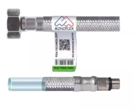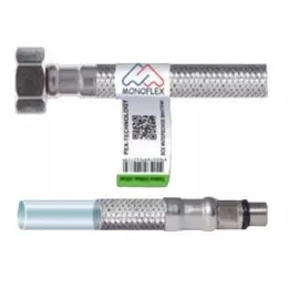 Monoflex250 ₽Подводка для смесителя Monoflex Н01550 (М10, 60 см, 12 мм) | Гибкая подводка 12 мм представляет собой шланг для воды из EPDM (нетоксичный каучук) оплетенный нитью из нержавеющей стали. Оплетка из высо...