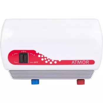Atmor3960 ₽Проточный водонагреватель Atmor NEW-7 с номинальной мощностью 7 кВт, безнапорный, производительность 5.5 л/мин, нижняя подводка, горизонтальная установка. Максимальная температура нагрева воды +65 °С.