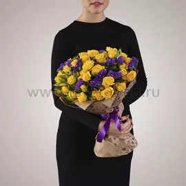 Цветочный Ряд3500 ₽Букет Лунная соната | Этот загадочный букет из фрезий и лунной гвоздики, лилий и ирисов притягивает к себе внимание своей пышной красотой, которая завернута в крафтовую бумагу в тон. Фиолетовые оттенк...