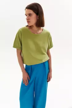 Современная Одежда+3890 ₽Футболка с декоративной лентой | Футболка из яркого хлопка с цельновыкроенным рукавом. На спинке декоративная контрастная лента и деликатный вырез. Резинка на рукавах делает их объемными, что создает ...