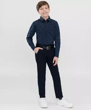 Button Blue3399 ₽Комфортные зауженные синие брюки базовой модели для мальчиков от 3 до 15 лет. Подходят для школьной формы, имеют молнию.